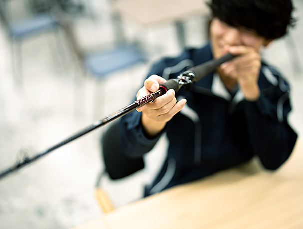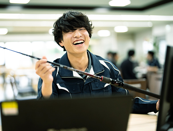 ロッド製造課でダイワのロッド(釣り竿)の生産計画を立て、その材料発注を担っています。月間の生産数を決めるタイミングで販売計画に基づく製造部門への発注数を確認し、日ごとの生産計画へと展開します。それに伴った必要な材料を計算し発注するという並行した業務もあります。生産現場の進捗を常にチェックしながらイレギュラーが生じた場合には微調整することも業務の一部です。