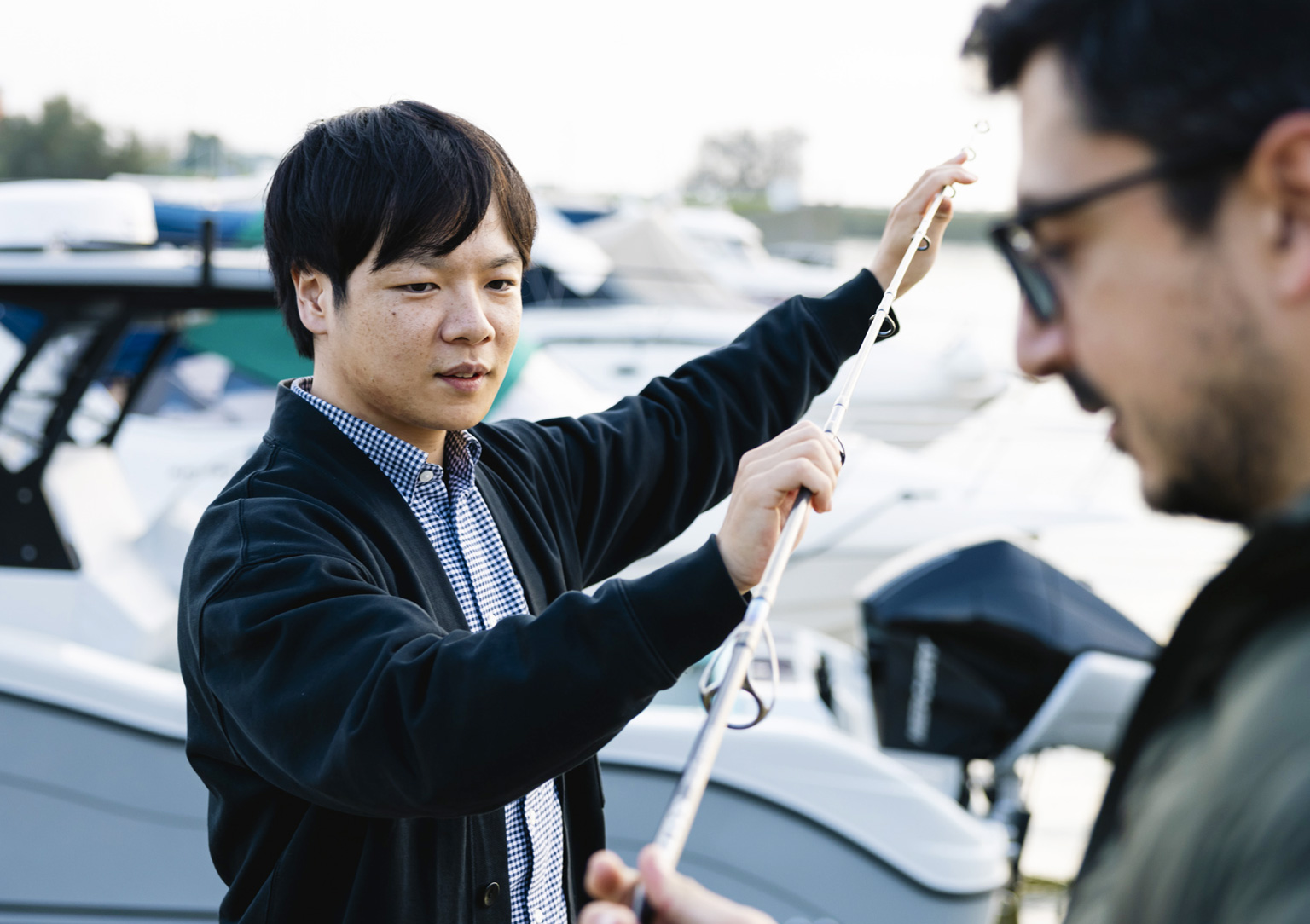 月2回ほど、現地スタッフと空路・陸路でイタリア国内外の様々な都市に市場調査に出かけます。実際に釣具店様に足を運ぶと、お客様のダイワへの満足度合いを確認できるのはもちろん、店主様との会話から営業や製品企画のヒントを得たり、日々の分析の答え合わせを行うことができます。最前線の、よりタイムリーでリアルな状況を知るための重要な活動です。特に海外で学んだことは、データでは表しにくい、現地のお客様の文化・価値体系的な背景を理解することの大切さです。例えば、日本では常に新製品が待ち望まれ、毎年冬のフィッシングショー前になると我々釣り人はワクワクしますが、イタリアの釣り人たちは、長く愛されてきた、歴史ある定番アイテムに強い魅力を感じるようです。環境保護や動物愛護など、釣り人の意識や、販売店様の商習慣も日本と違うところがあります。「こんなところまで違うのか。」と、毎回驚きがあり、たくさん勉強させてもらえます。現場に足を運び、道中はイタリア人の同僚と熱い議論を交えながら、「何が現地の釣り人たちの心を打つのか」をチームで考え、実行できるのは海外販社の仕事の醍醐味と強く言えます。